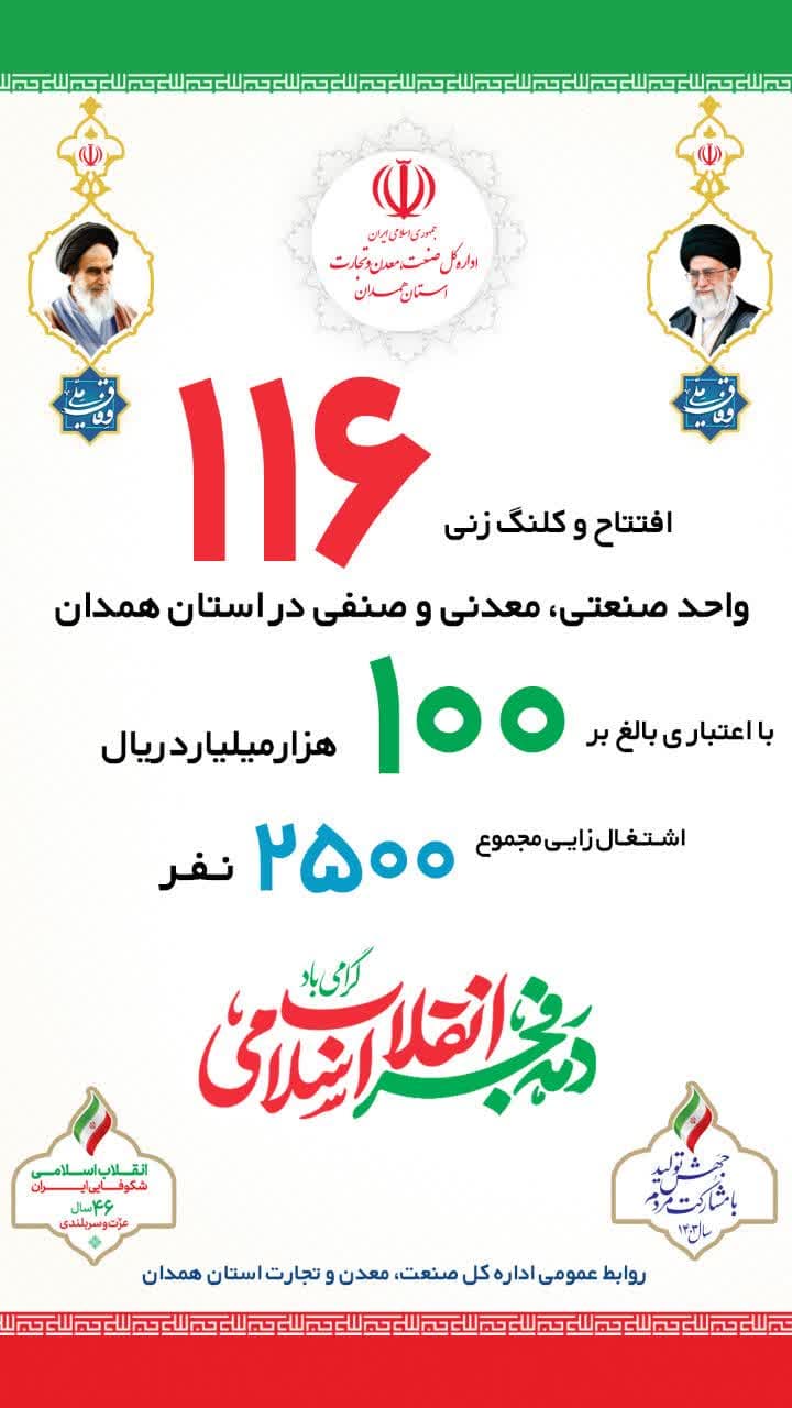 افتتاح و کلنگ‌زنی ۱۱۶ طرح صنعتی و معدنی در همدان