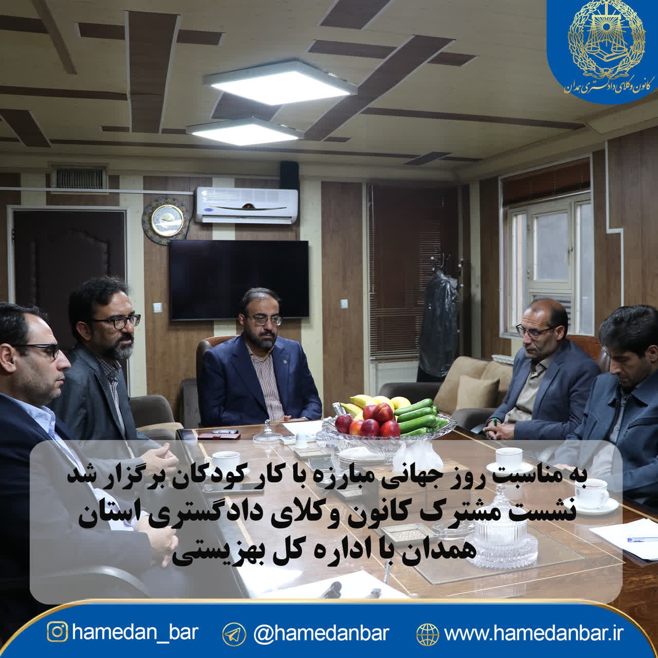 به مناسبت روزجهانی مبارزه با کار کودکان، نشست مشترک کانون وکلای دادگستری استان با اداره کل بهزیستی همدان برگزارشد.